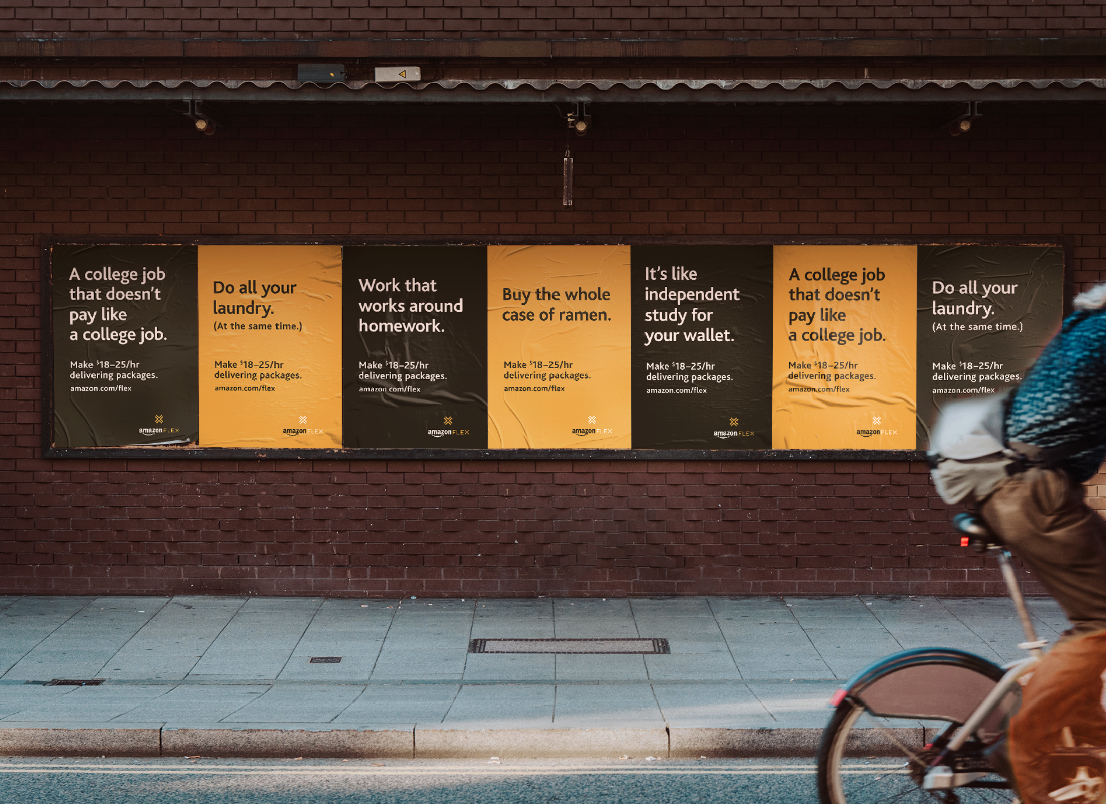 This copy-driven recruitment campaign highlights the freedom of flexible work and the difference a few extra bucks can make.