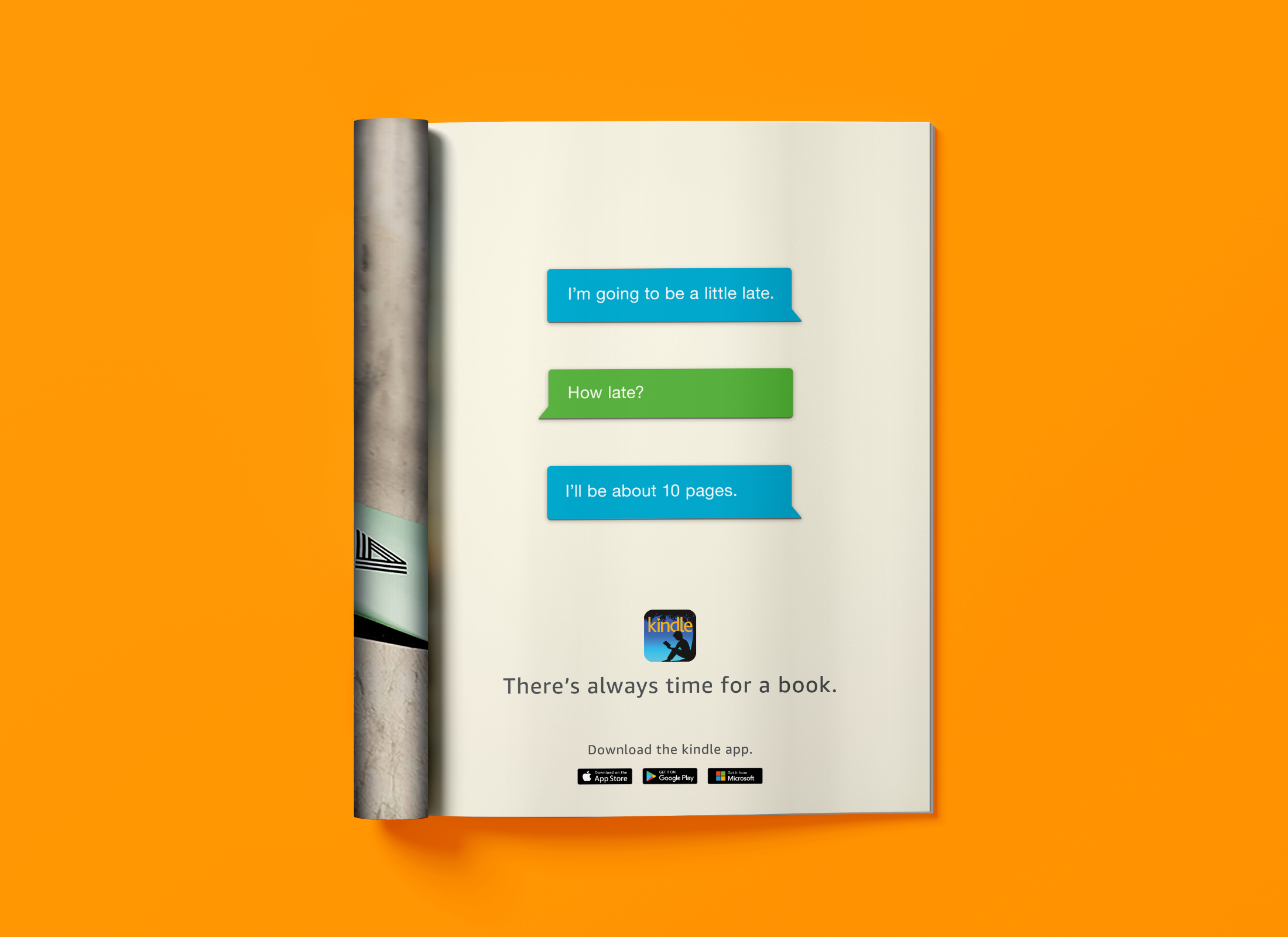 The simple insight that almost everyone feels ‘they would like to read more’ inspired this campaign, depicting the many moments people could use the Kindle app to get in a few pages.