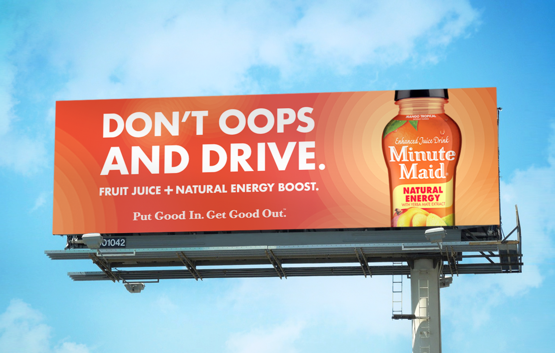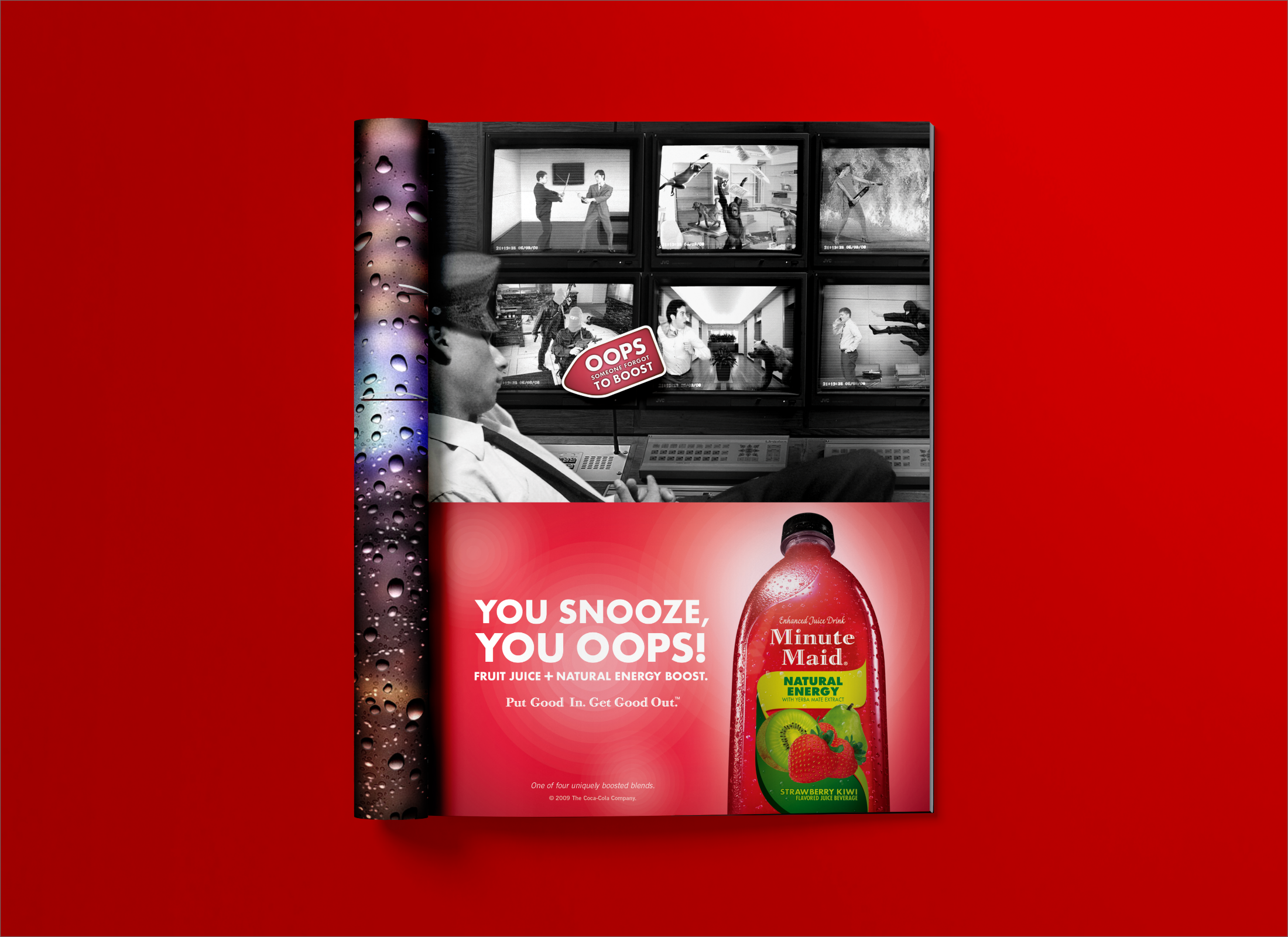 The ‘Oops!’ campaign relaunched Minute Maid Enhanced juices, shifting the target from "juice moms" to millennials by repositioning them as natural energy drinks that help you stay sharp and avoid everyday fails.