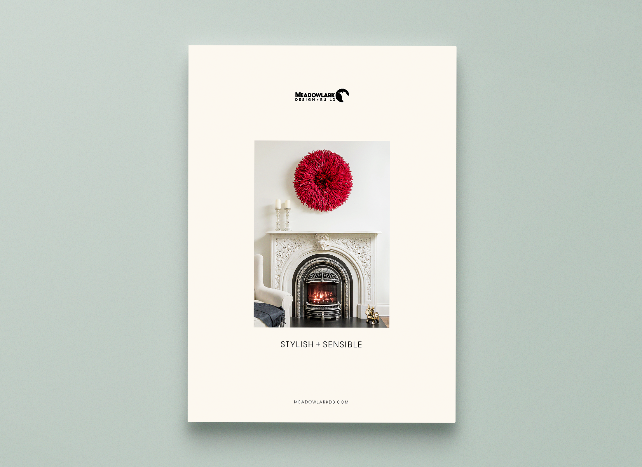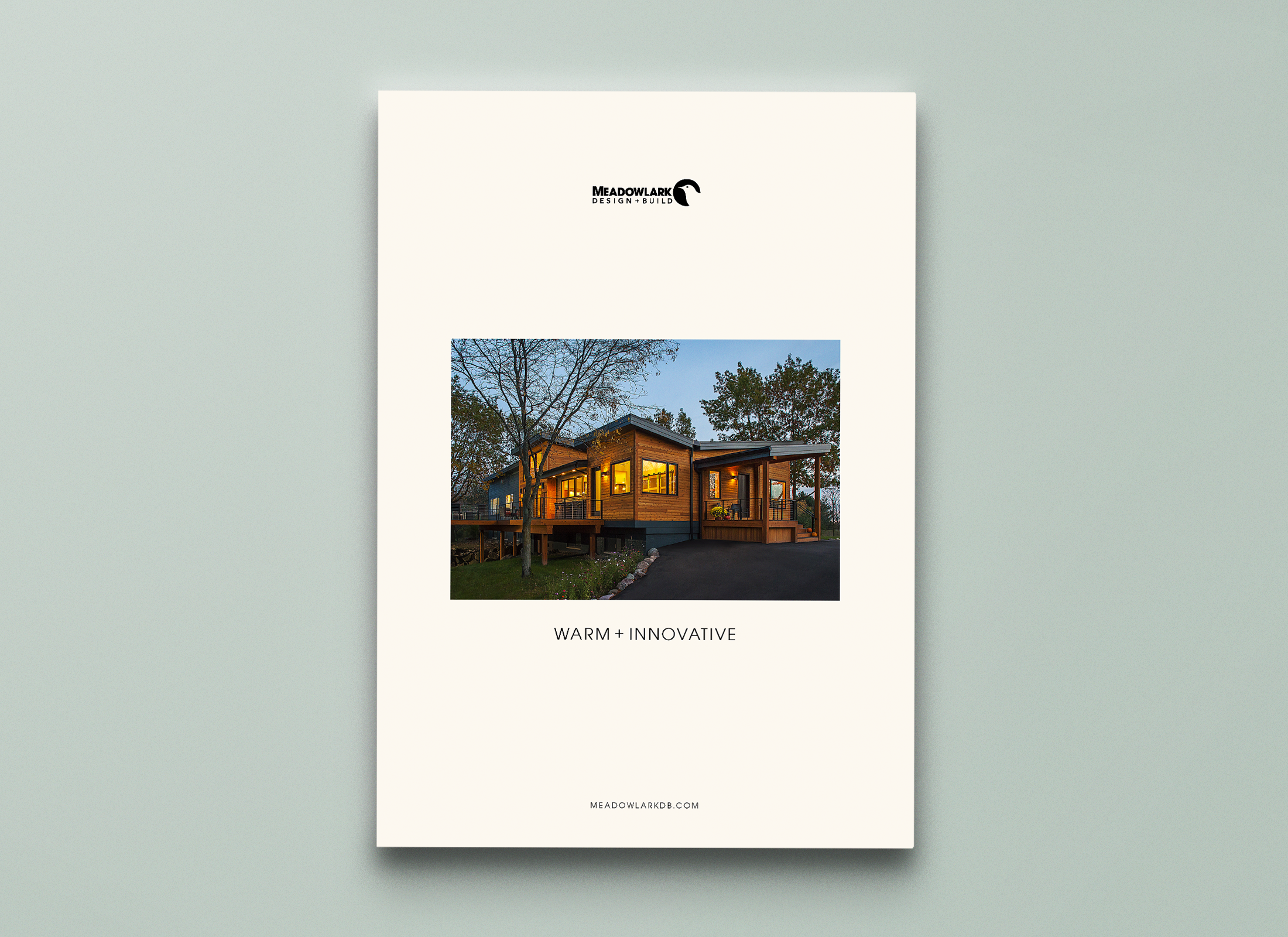The headlines play off the ‘+’ in Design + Build, emphasizing the synergy of innovation + livability—presented in a clean, sophisticated layout that showcases Meadowlark’s artistry + craftsmanship.