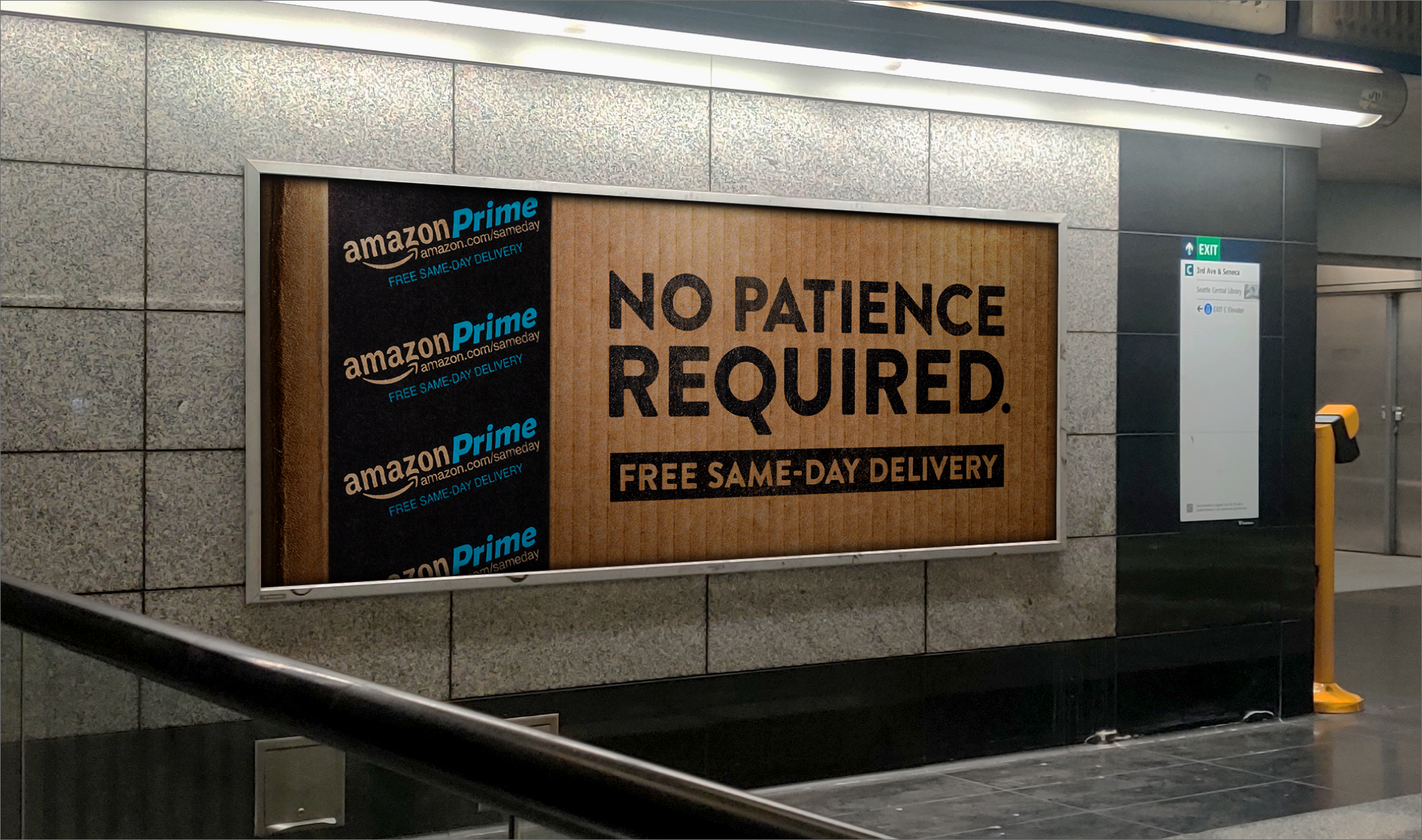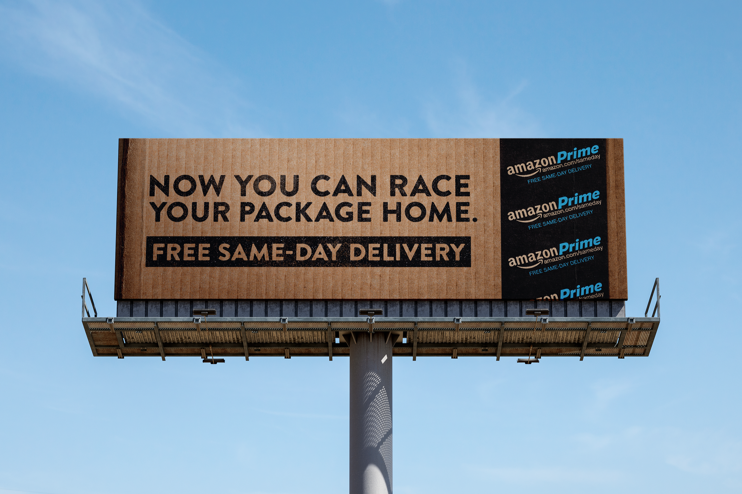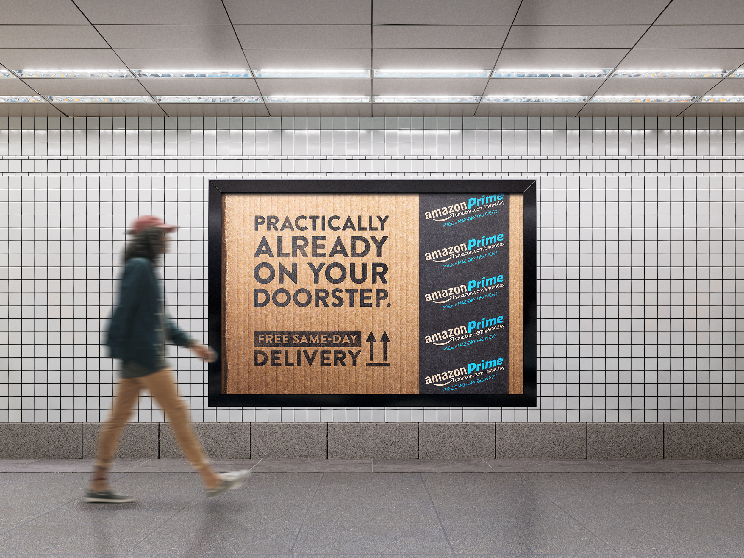 Two-day shipping is yesterday’s tomorrow. This copy-driven campaign introduced the reality-shifting marvel of Prime Free Same-Day Delivery, using Amazon’s iconic package tape and box as visual elements.